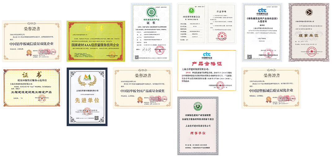 公司自成立以来一直致力于铝塑复合板、铝单板的研究、开发和生产事业,企业先后通过了ISO9001质量认证、ISO14001环境管理体系认证、CE认证、安全生产标准化、绿色产品认证、全国AAA级诚信企业、拥有发明专利和实用新型专利20余项,是铝塑复合板行业标准起草参编单位。旗下的“吉祥家美”品牌荣获上海名牌。